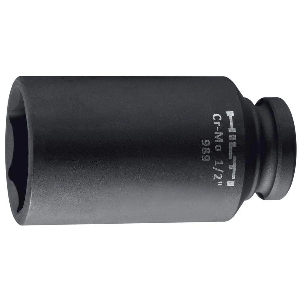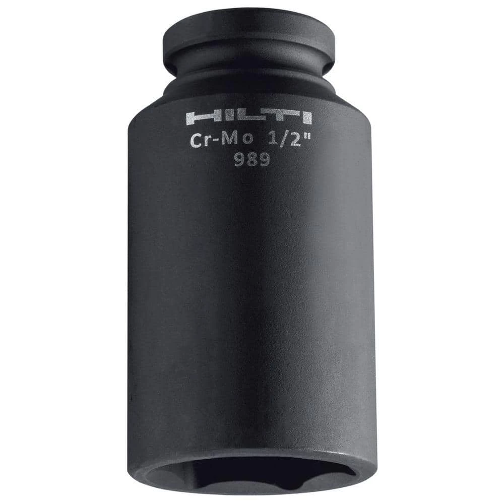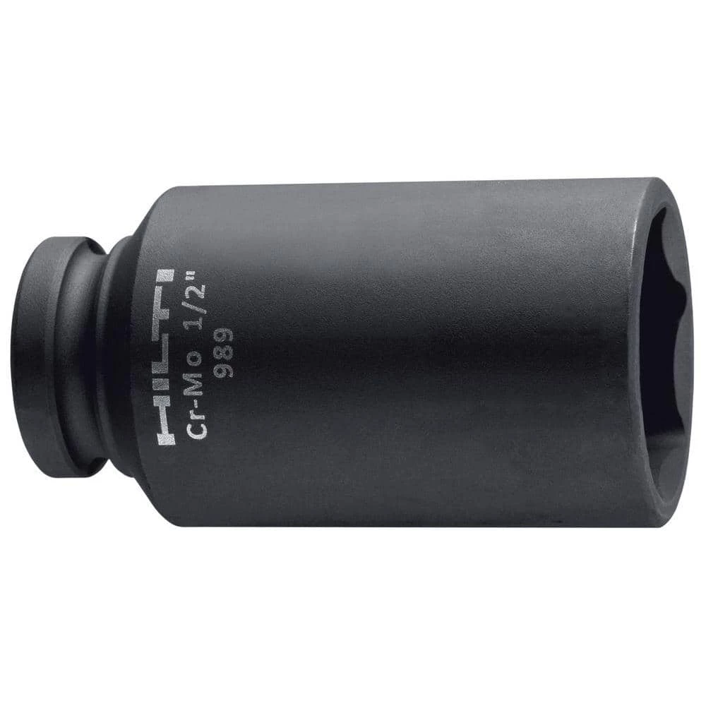 Make an impact. Hilti’s S-NSD line of deep impact sockets offer long-lasting durability under the most stressful applications. Used for fastening lag bolts, steel bolts, high strength steel bolts and concrete screw anchors, S-NSD impact sockets feature a 1/2 in. square drive anvil and are constructed of CrMo alloy steel for added strength, wear resistance and reliability. 3 in. long version provides extra length for fastening in hard to reach areas. Perfect partner for use on corded or cordless impact drivers. Great for tightening nuts and bolts and driving and removing screws.