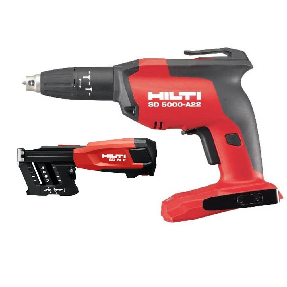 Hilti’s SD 5000-A22 Drywall Screw Driver is the essential item for the Interior Finishing Tradesmen who require performance and durability. This tool is the perfect add-on to any 22-Volt Hilti Lithium-Ion Kit. It has the power to tackle tough applications and it is backed up by an industry leading commercial use tool warranty. Great for Fastening drywall boards and wood boards to metal or wood framing on walls and ceilings.