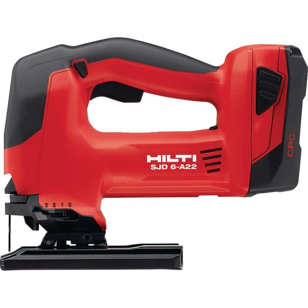The new cordless jigsaw SJD 6-A22 exceeds most corded tools with its detailed precision work and production cutting performance, and its the first ever Hilti cordless jigsaw. Offering a variable speed dial and speed trigger, LED light for illuminating cutting areas, keyless quick connect chuck, and dust blower, the new cordless jigsaw is more efficient and versatile. Ideal for cutting and trimming a wide variety of metals, plastics, and wood and wood composites up to 150 mm thick. Compatible with all Hilti 22-Volt Lithium-Ion batteries.