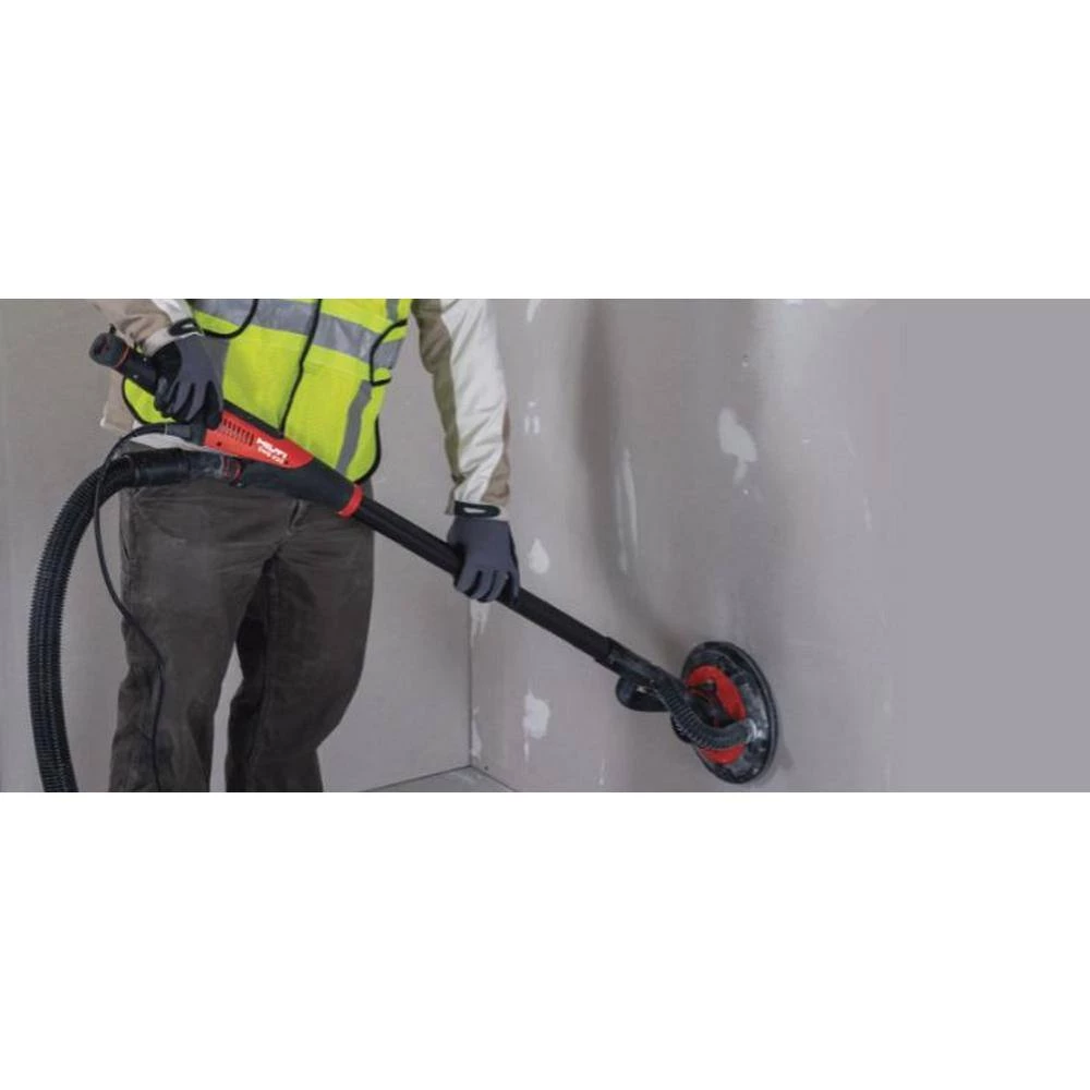 The Hilti Long Neck Drywall Sander is faster to finish – long-neck sanders can reduce project time due to the combination of speed, surface finish, and minimal rework so you can get the job done sooner. It is easier to use. than an orbital sanders and are less likely to leave surface marks. When paired with Hilti’s mesh net sanding discs, you will experience virtually dust-free sanding which will help prolong the life of the tool, reduce dust exposure and minimize clean up.