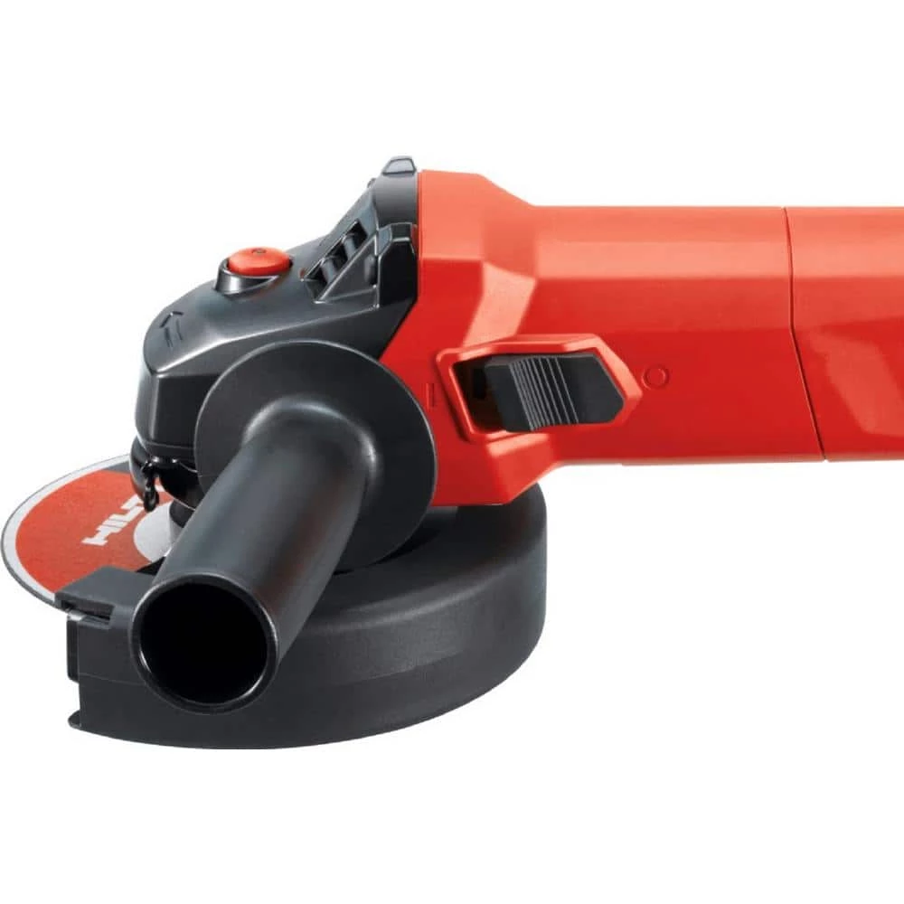 The Hilti AG 500-7SE 5 Corded 5 in. Angle Grinder with lock features a powerful 6.5 Amp motor capable of generating up to 11,500 RPM for grinding tough materials. Its low-profile head lets you grind and cut in tight spaces, while the side handle adjusts easily for right- or left-handed use. The protective wheel guard can be re-positioned without tools.