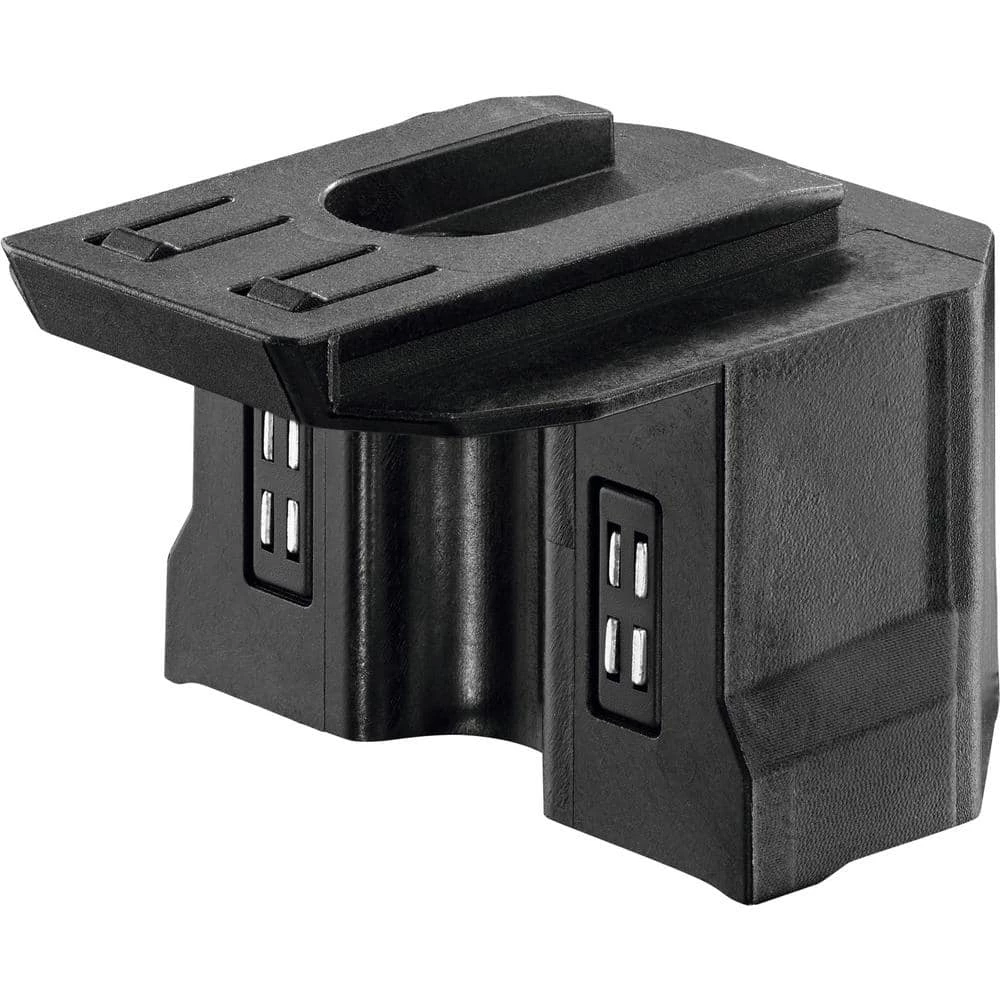 The PMA 86 Rail Adapter is a magnetic base that attaches to drywall track to center lines along the edge. It is an accessory for the PM 40-MG green multi-line laser. This item has the ability to easily remove the tripod feet of the PM 40-MG laser and slide in the magnetic foot.